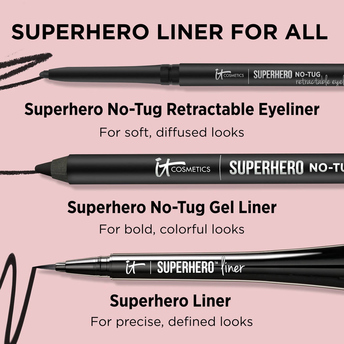 If you prefer an automatic eyeliner to one you need to sharpen, open your eyes to Superhero No-Tug Retractable Eyeliner! Featuring our exclusive No-Tug Technology™, this waterproof mechanical eyeliner delivers the super smooth glide and super saturated color you’ve come to know and love—now with no sharpening required! Simply twist the pencil up to apply the longwear formula that sets for super all-day wear and doesn’t smudge.