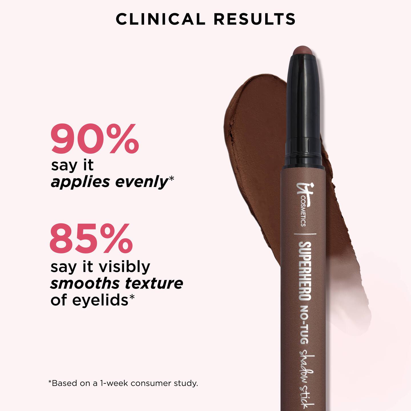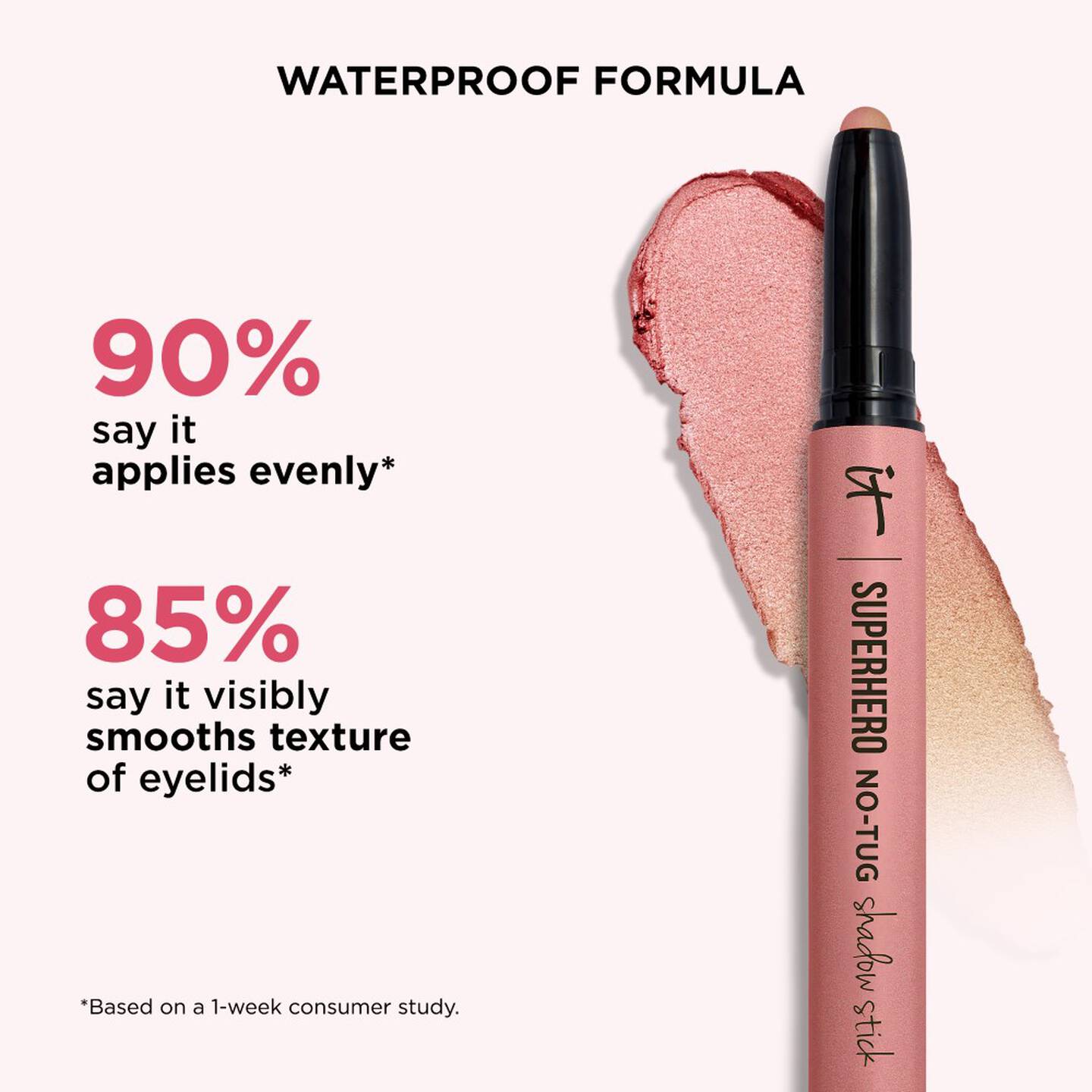 Superhero No-Tug Waterproof Eyeshadow Sticks are everything you love about long-wear eyeshadow, now in an easy-to-use cream shadow stick! Featuring our exclusive No-Tug Technology™, this super blendable eyeshadow stick glides onto your lids without tugging on your delicate eye area. Available in matte and pearl finishes, each of the 12 gorgeous shades is super buildable, allowing you to create limitless eye looks with ease! Plus, the formula is completely crease-proof so you don’t have to worry about it settling into your eyelid crease. It’s truly your most gorgeous eyes in one swipe!